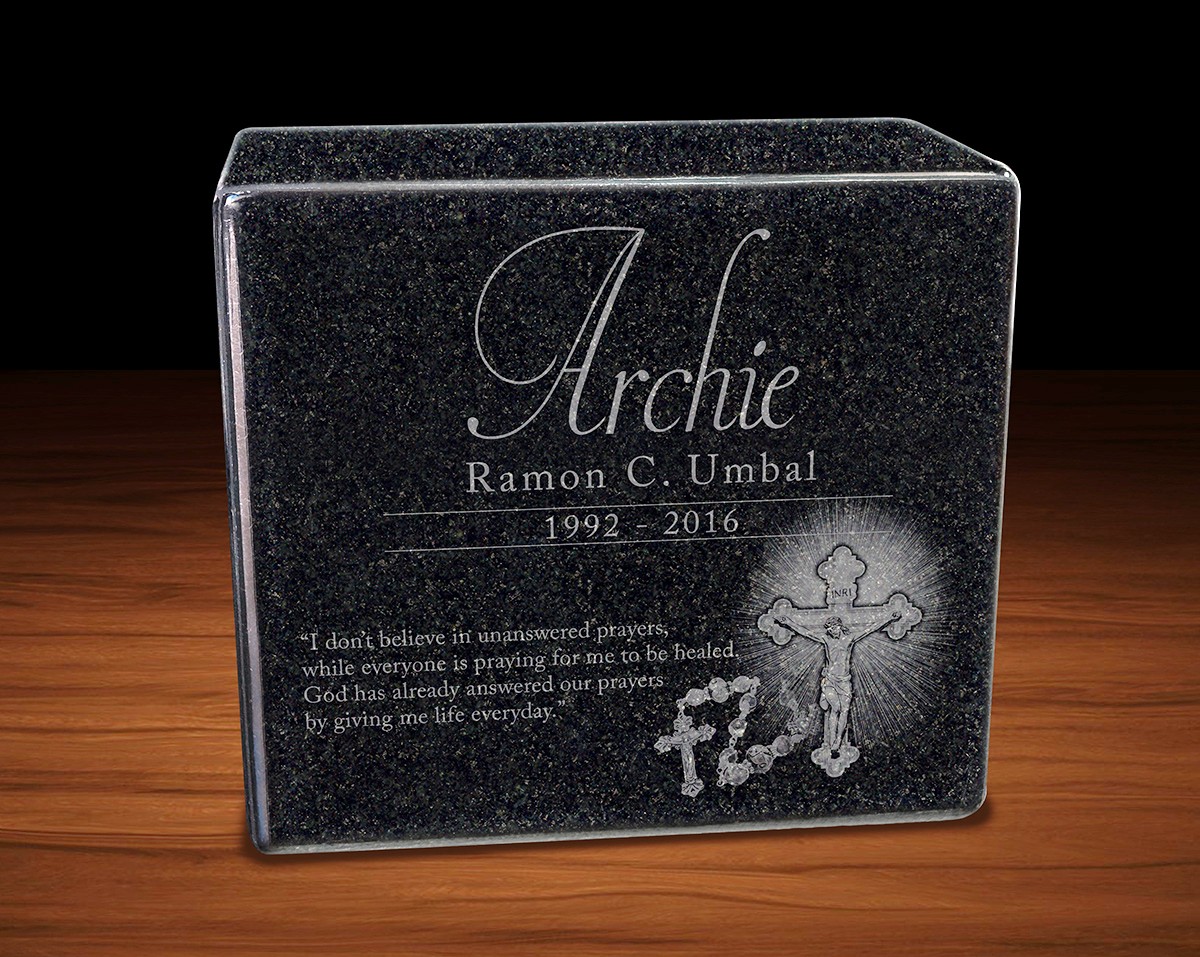 Overview We stock all colors of 4 x 8 x 9 granite cremation urns as well as detailing them with diamond etched or laser etching. Coming soon we will be offering all different material types of urns that we will laser etch as well. Get a Quote Today More Information Request a quote for our premium wholesale granite. We look forward to connecting with you and assisting in your project needs! More Products View All Products In-Stock Specials Sculptured Granite Monuments Granite Signage