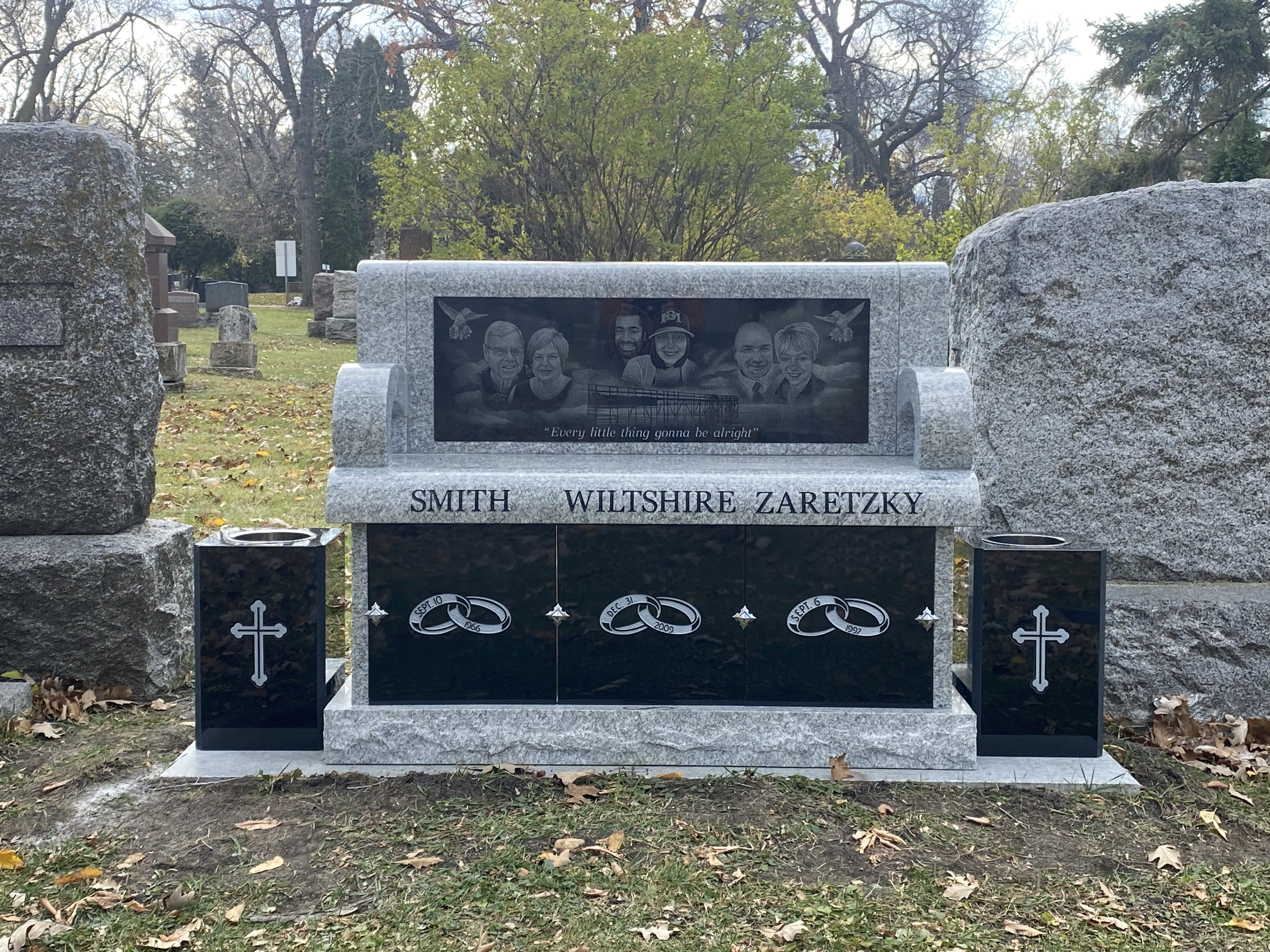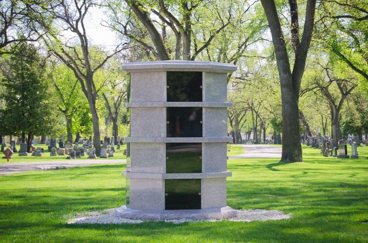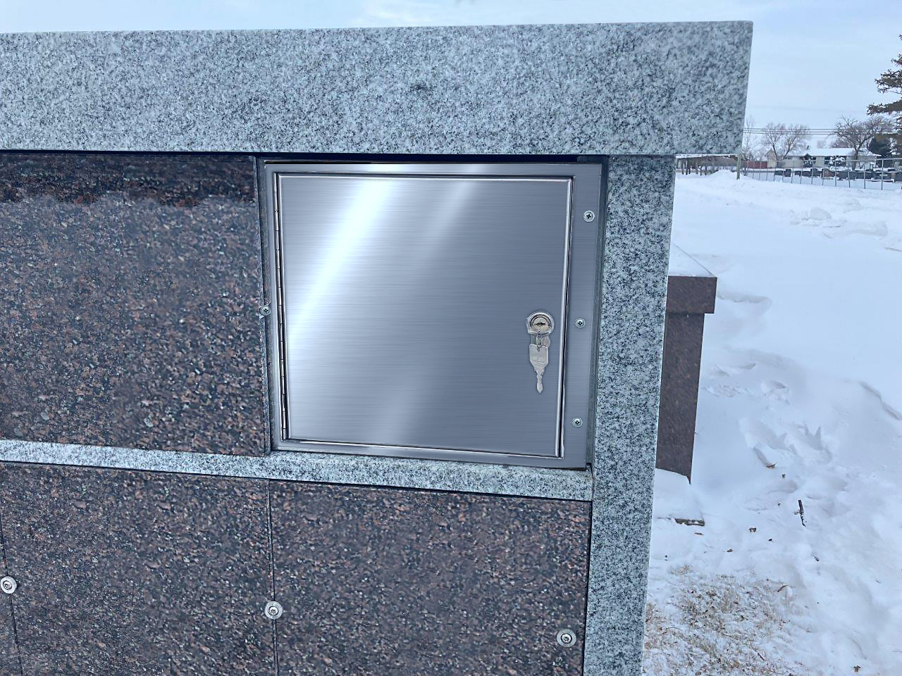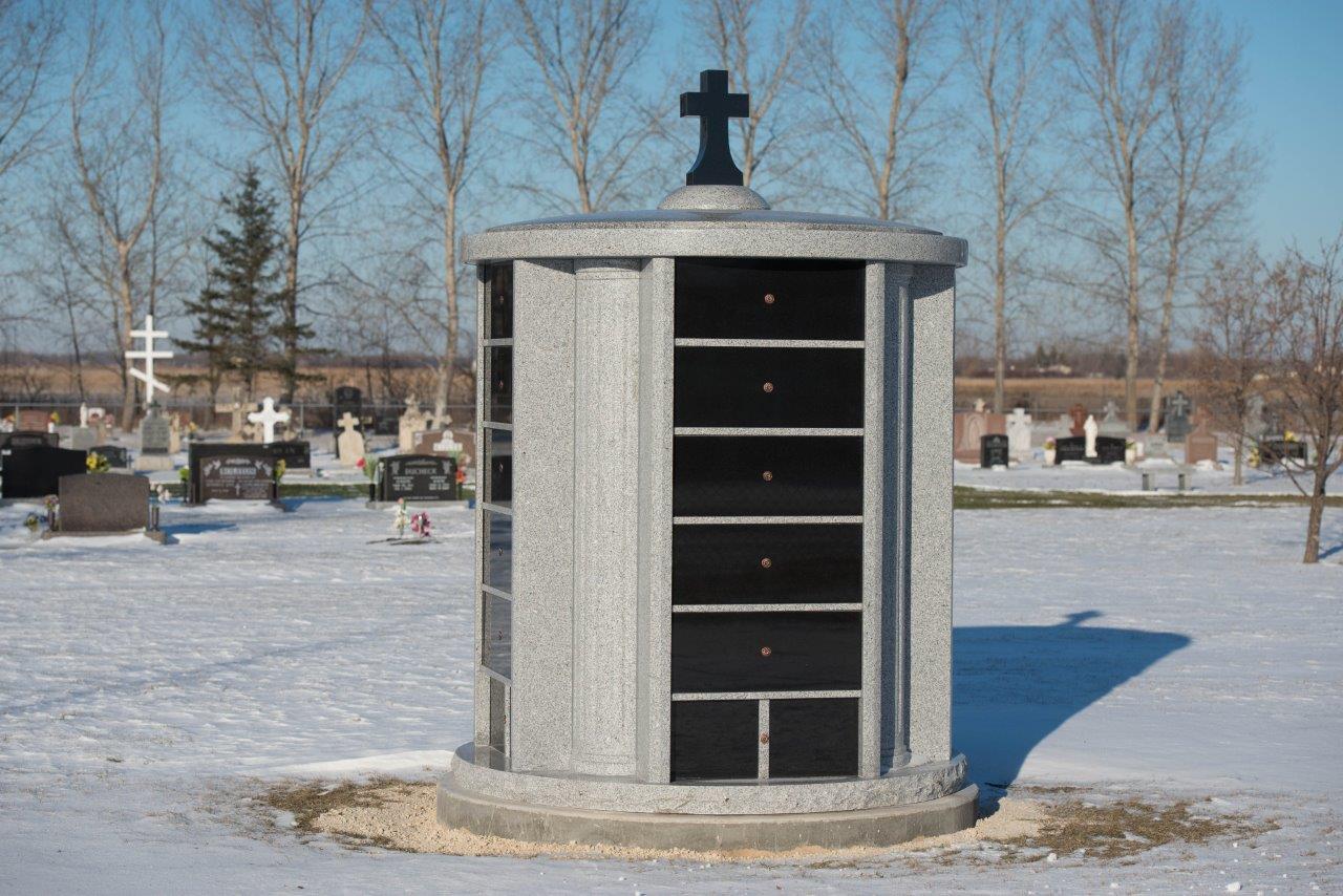 All our columbaria are constructed of 100% all granite with all the interior niches polished as well as interior stainless steel privacy locking security doors with outer security stainless steel dials and screws for the exterior shutters. All our columbarium’s are all pre-assembled and ready for immediate installation. Belts are included and all is needed is the crane to unload and put in place.