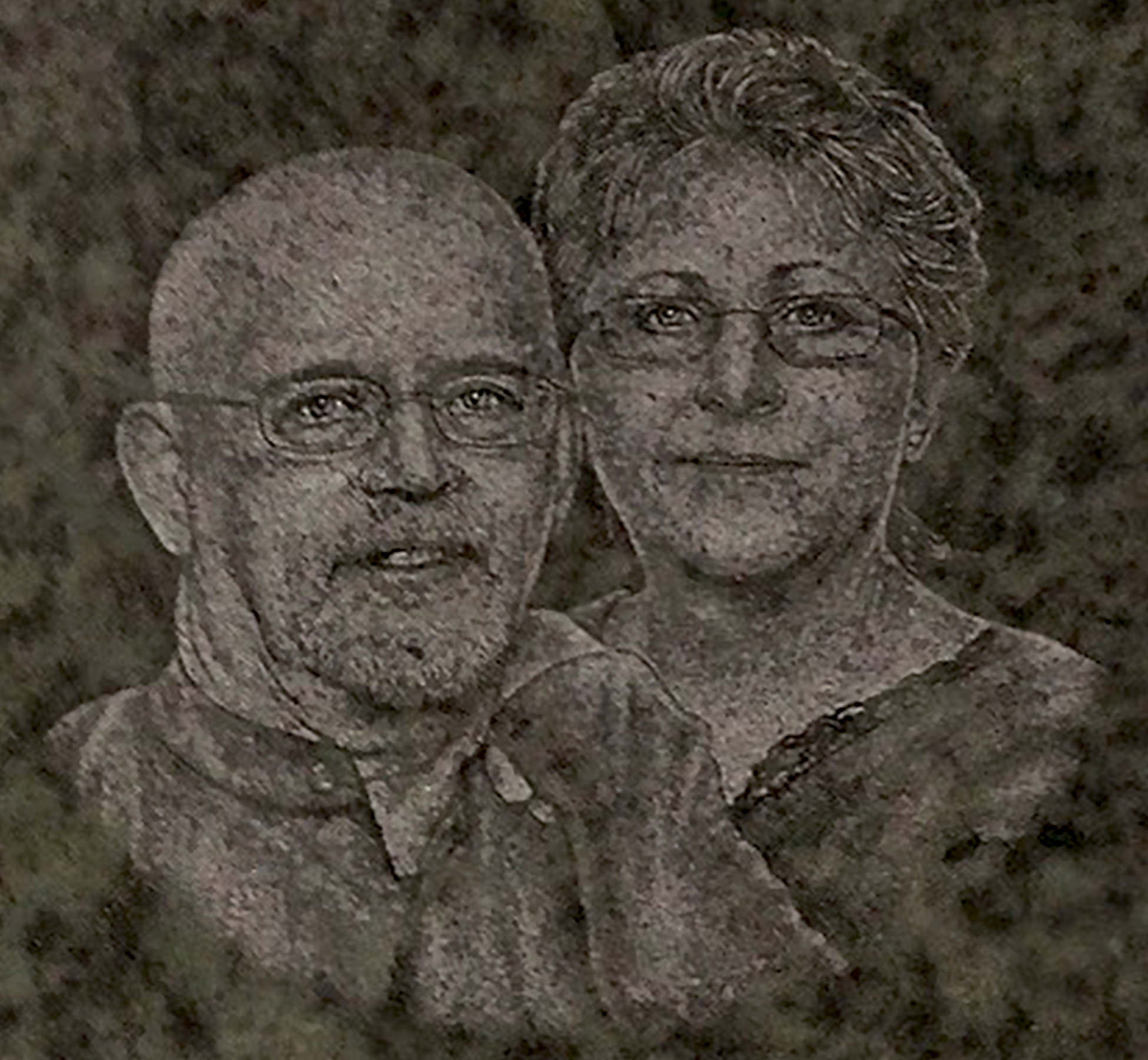 Our diamond impact and laser etchings are second to none. With a talented graphic artist team, we can incorporate portraits, landscape scenes, icons and personal designs to your order on several different colors that we stock. Please see our examples of completed works in different colors that we have completed.